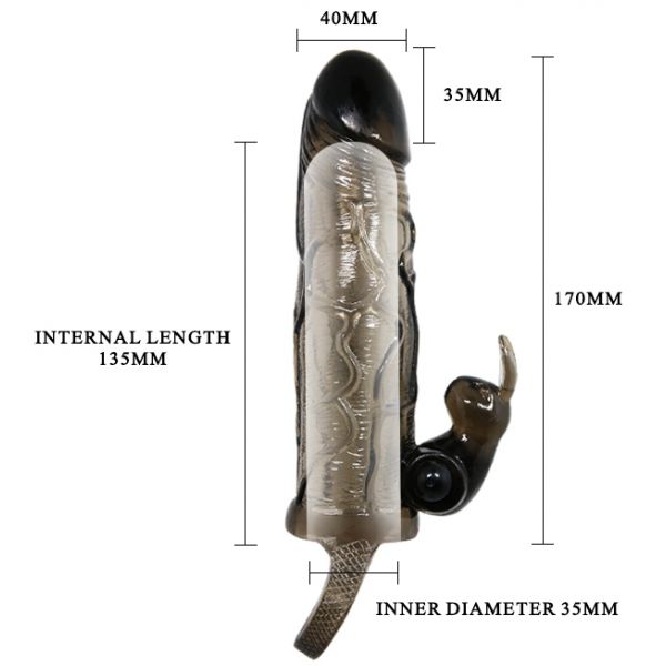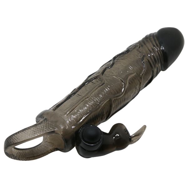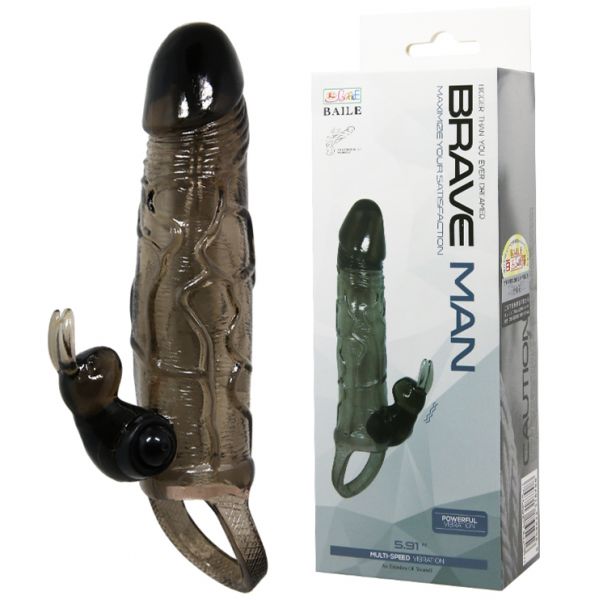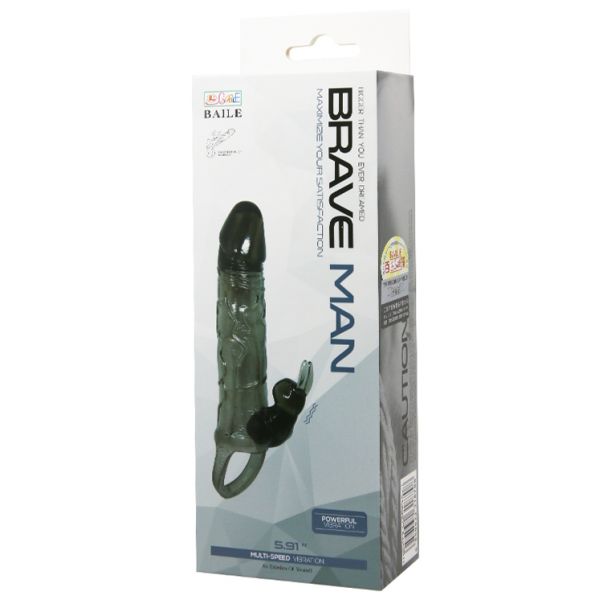 Увеличивающая вибронасадка с клиторальным стимулятором и петлей под мошонку черная Brave Man + 3,5 см