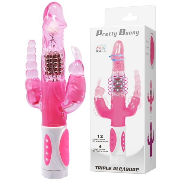 Вибратор Hi-Tech с тройной стимуляцией Pretty Bunny