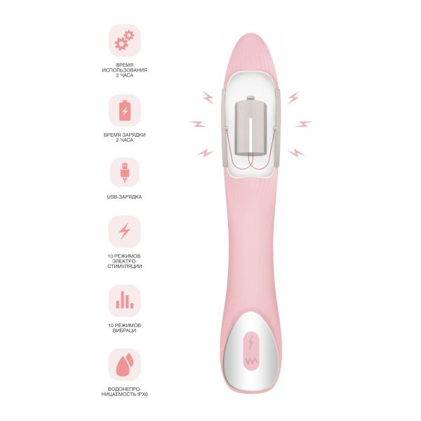 Вибратор с электростимуляцией PHYSICS TESLA G-POINT, силикон, розовый, 21 см