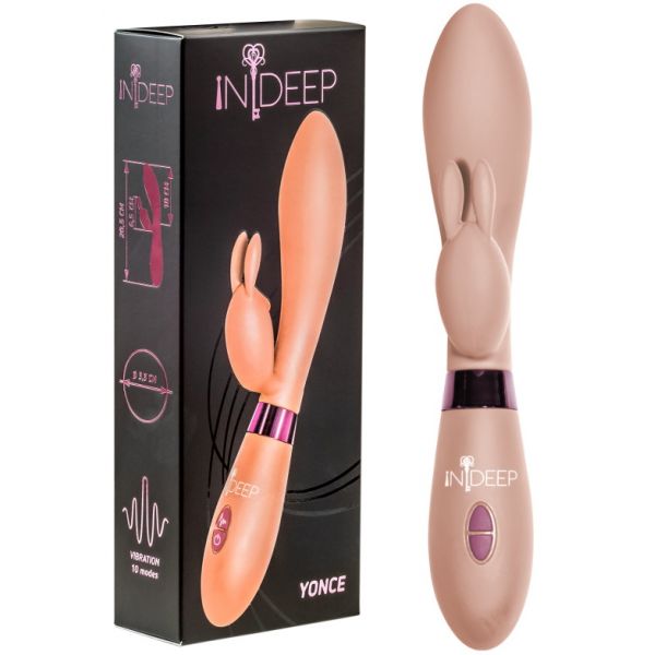 Indeep Yonce снабжен двумя независимыми моторчиками: первый расположен в головке, второй - в отростке для стимуляции клитора.