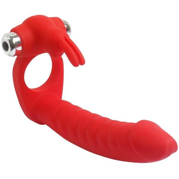 Вибро-кольцо для двойного проникновения Trinity Fun - Evil Teaser красный