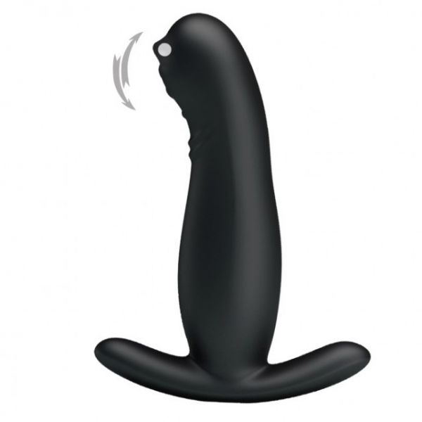 Стимулятор простаты черного цвета выполнен из мягкого силикона, на поверхности нет швов или зазубрин - ничего не доставит дискомфорта. Эргономичная форма создана именно для массажа простаты с учетом всех анатомических особенностей. Головка округлая, загнута специальным образом для максимального давления с 4-мя различными волновыми функциями стимуляции.