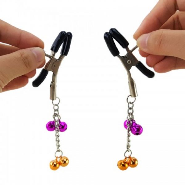 Зажимы для сосков с двойным бубенчиком пурпурным