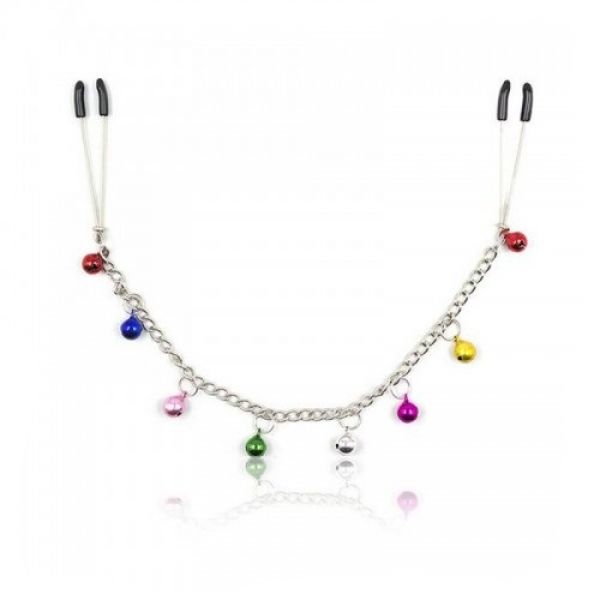 Зажимы для сосков с цепочкой и цветными бубенчиками