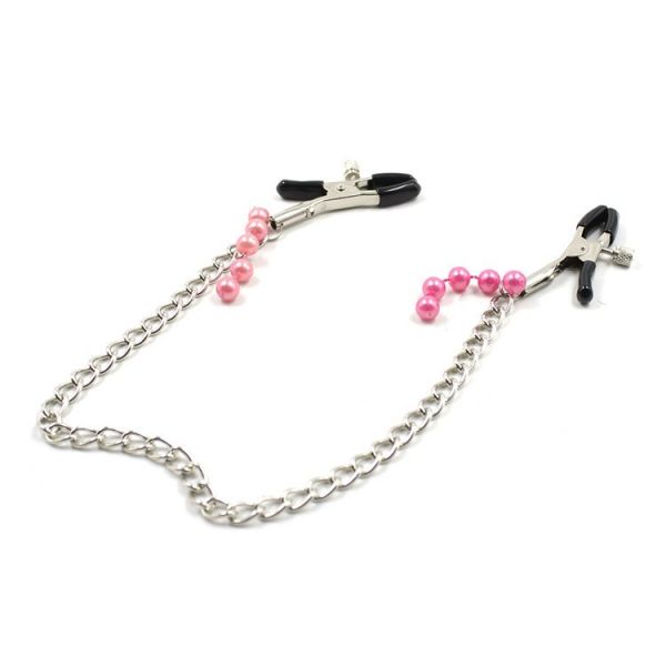 Клипсы на соски, соединенные цепочкой из серебристого металла, с возможностью регулировать силу зажима. Зажимы покрыты резиновыми прокладочками, чтобы не повредить нежную кожу сосков.