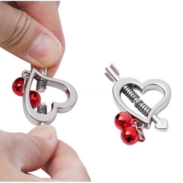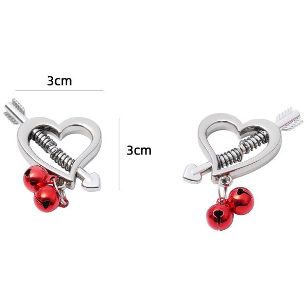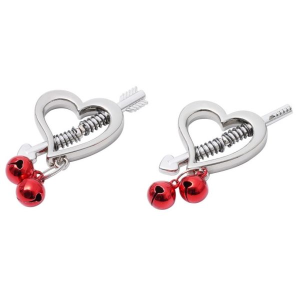 Зажимы на соски в форме сердец с красными бубенчиками
