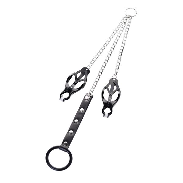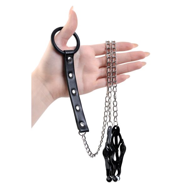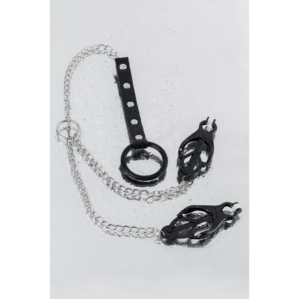 Зажимы для сосков с кольцом для пениса, черно-серебристые