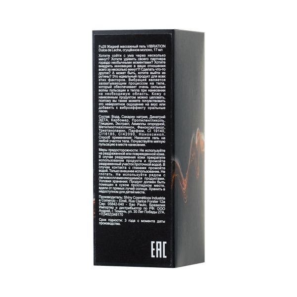 - Клинически протестированный состав Intt Vibration Dulce de Leche безопасен для организма. Не вызывает аллергии. Не оставляет липких следов. Просто смывается водой.