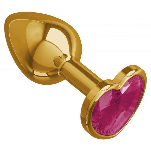 Золотистая анальная пробка с розовым камушком в виде сердечка S