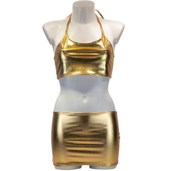 Золотистый комплект белья из юбочки и топа S